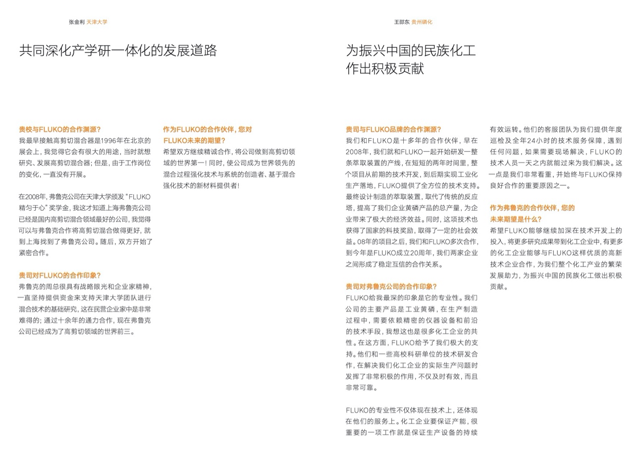 弗魯克用戶遍布中國、美國、英國等30個國家和地區,積累了10000+的成功案例,公司能夠以成功案例的經驗數據爲用戶的技術選型及工藝應用提供實證依據。從用戶工況模拟到工藝優化、從解決方案優化到設備開發、從産品研制到品質管控,從售前咨詢到售後服務,弗魯克自始至終提供高品質、可視化、快速響應的服務。精誠所至、使命必達,弗魯克金牌品質,讓用戶絕無後顧之憂!