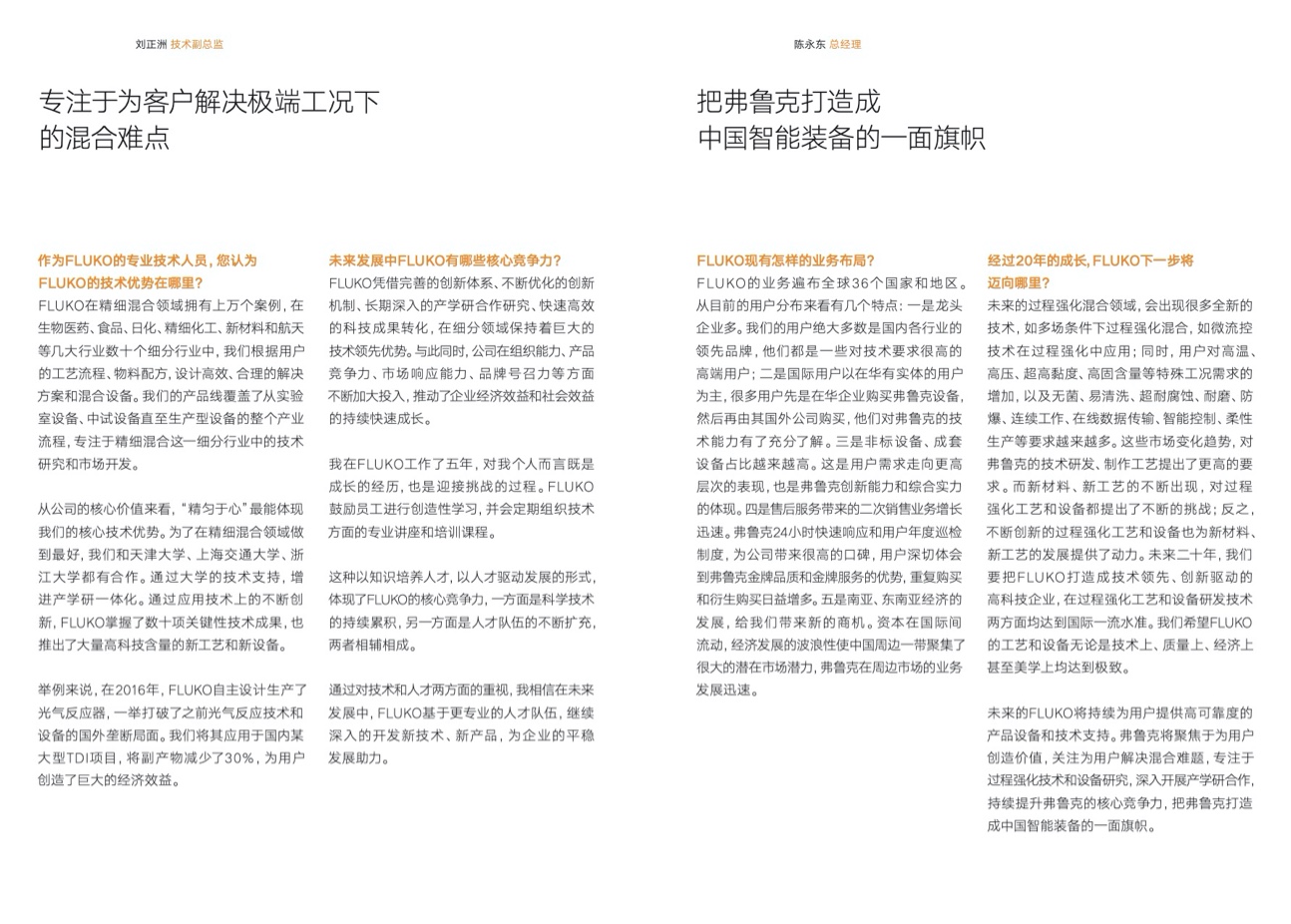 弗魯克堅持“精勻于心 精營于信”的核心理念,始終堅持把用戶利益放在第一位,始終堅持“不斷探索、勇于創新”的匠心精神,始終堅持爲用戶解決工藝難題,始終堅持爲用戶提供最優工藝、系統和設備解決方案,誠信爲本,全心服務,持續創新,聚焦于實現用戶價值的最大化。