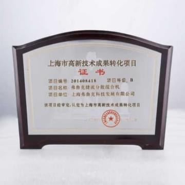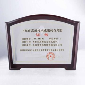 20132013年,高剪切分散乳化機被認定爲“上海市高新技術成果轉化項目”;