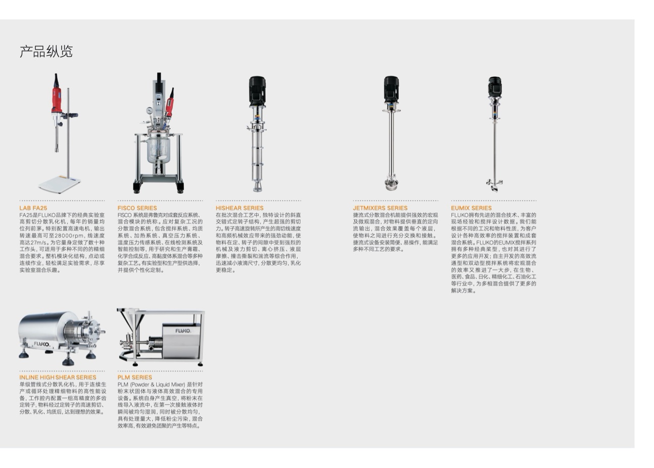弗魯克成立于上世紀九十年代,專注于混合過程強化的研究。公司研發了高剪切混合設備、微結構混合設備、新型槳葉攪拌設備等混合強化設備及其應用技術,爲新材料、生物、新能源汽車、新能源、節能環保等國家戰略新興産業和食品、化工、輕工、石油、醫藥、化纖、農業等傳統産業的用戶提供生産和實驗中分散、乳化、均質、固/液分散混合、萃取、吸收、結晶、聚合、反應等工藝難題的解決方案,是混合強化領域的引領者之一。